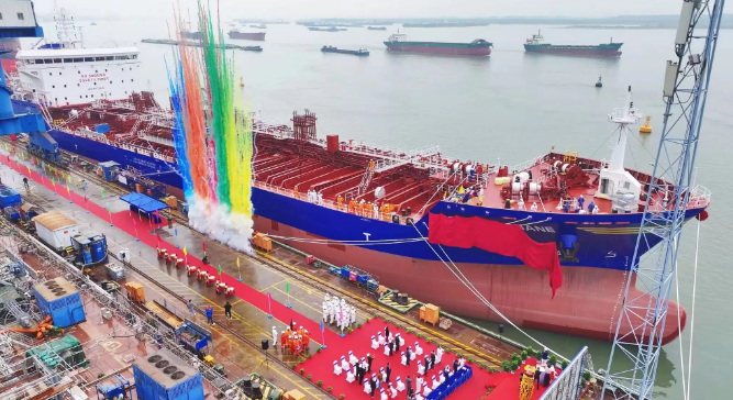 10月14日,揚州金陵為比利時船東CMB建造的第6艘25000噸雙相不銹鋼化學品船舉行命名儀式。儀式上,教母Catherine Cauwe女士命名25000噸雙相不銹鋼化學品6#船為“BOCHEM BRI**ANE”輪。按照船東計劃,該船將在10月18日駛離船廠碼頭,正式投入營運。